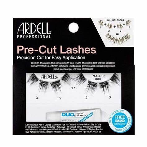 The Ardell Pre-Cut Lashes #900 Black are designed for those seeking a customizable and easy-to-apply lash solution. These lashes come pre-cut into four segments, allowing for precise application and the flexibility to create a full strip lash look or accentuate the outer corners for a flared, cat-eye effect .